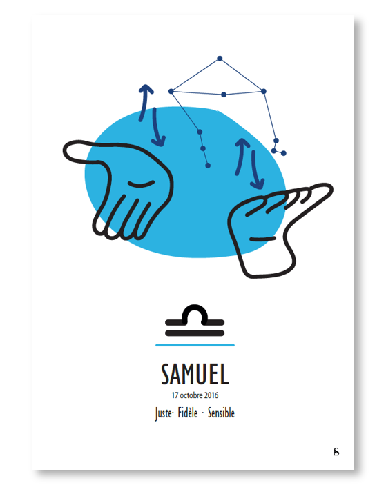 Offrez un cadeau original et personnalisé en Langue des Signes Française, incluant le signe astrologique, le prénom, la date de naissance ainsi que trois traits de personnalité de la personne à qui vous le destinez.